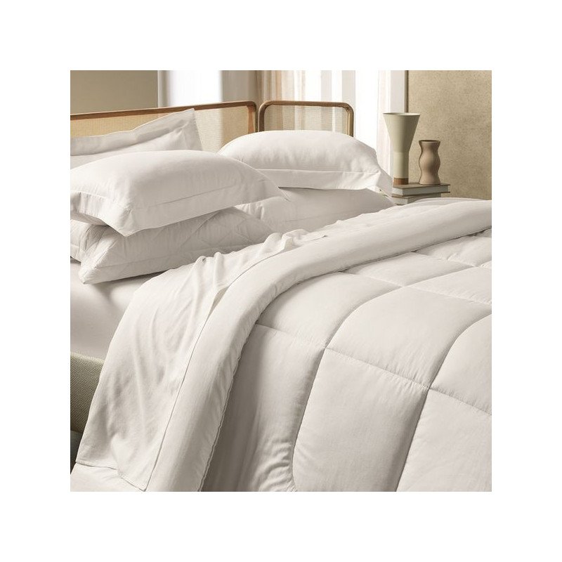 300 hilos Algodon egipcio satinado Suavidad extrema Tratamiento Thermobond: Evita el desplazamiento y deformación del relleno durante el lavado. Previene la aparición de fibrillas a través del tejido y prolonga la durabilidad del producto. Hipoalergénico y altamente respirable