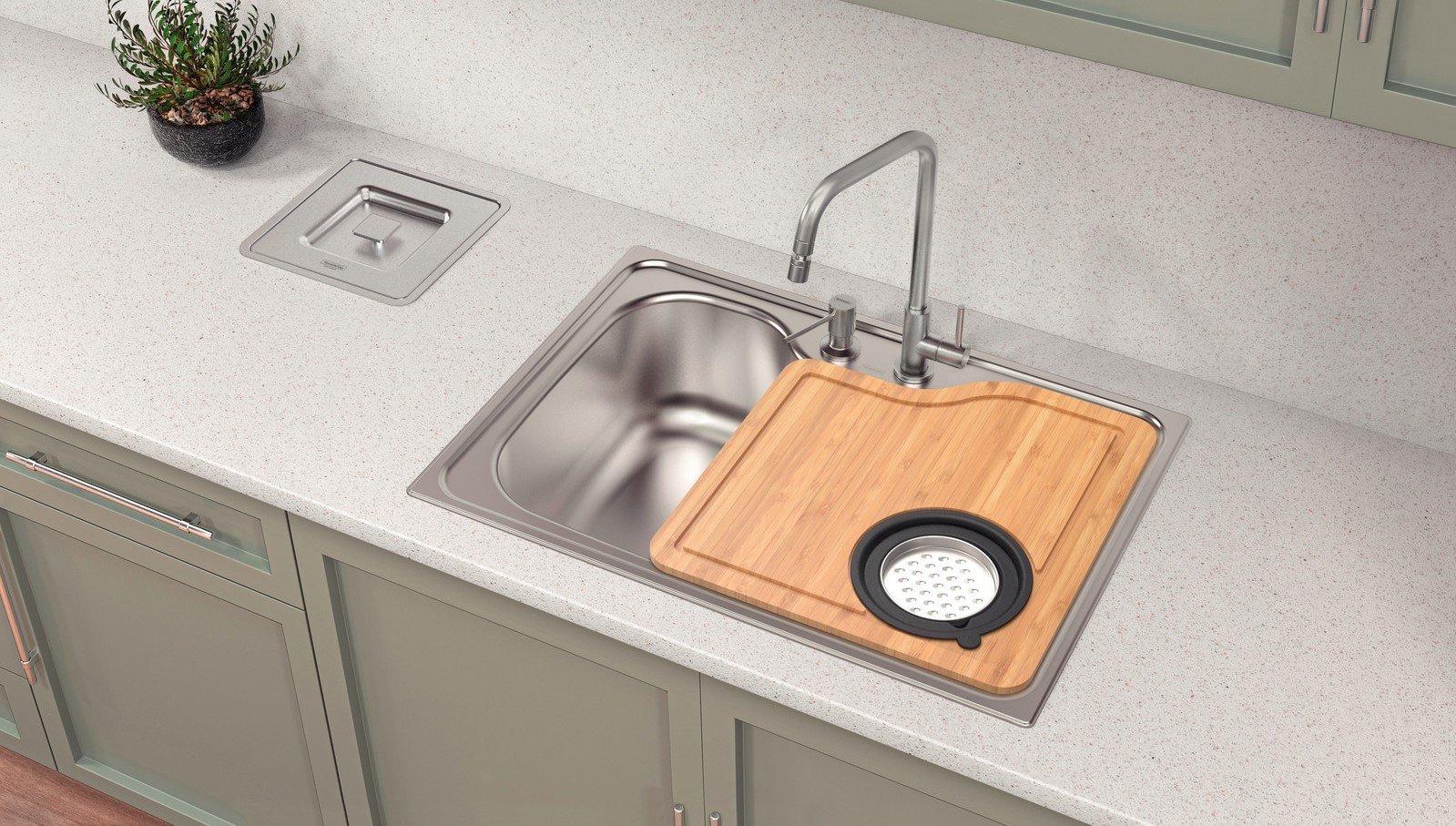OPCIÓN CON ACCESORIOS ADICIONALES: Dispensador de jabón 500 ml Tabla de madera Cuenco rallado SKU 93806/132